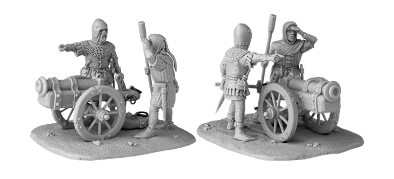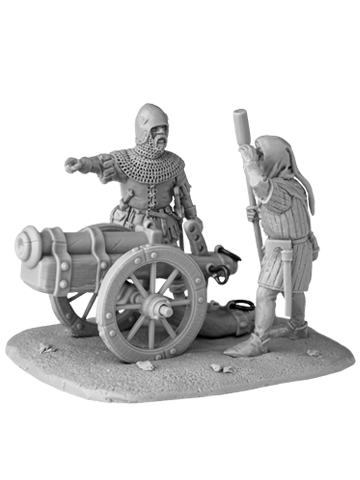 Two Unpainted figures for Hussite Artillery, one artillery piece. Ideal for games like SAGA and other wargames.